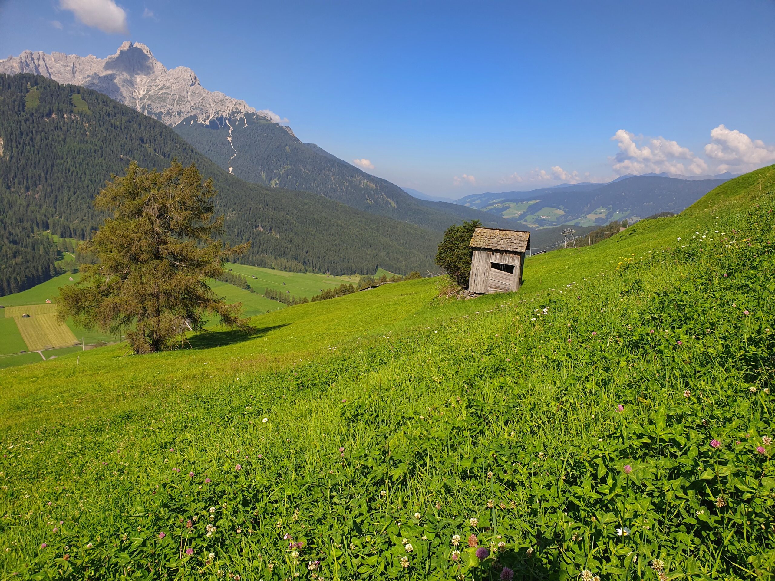 Landschaft in Sexten mit alter Schupfe, aufgenommen nahe der Festung Mitteeberg.